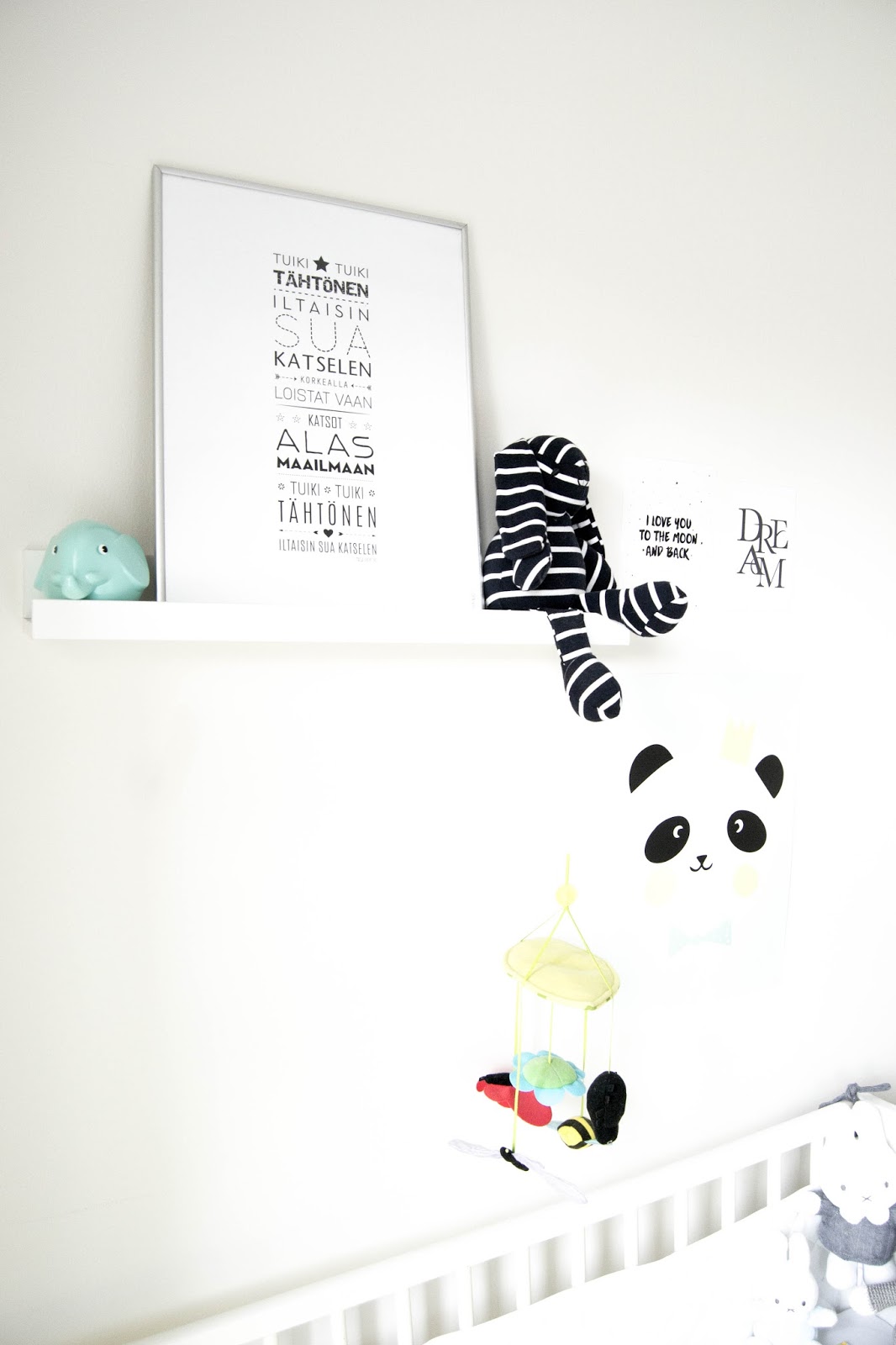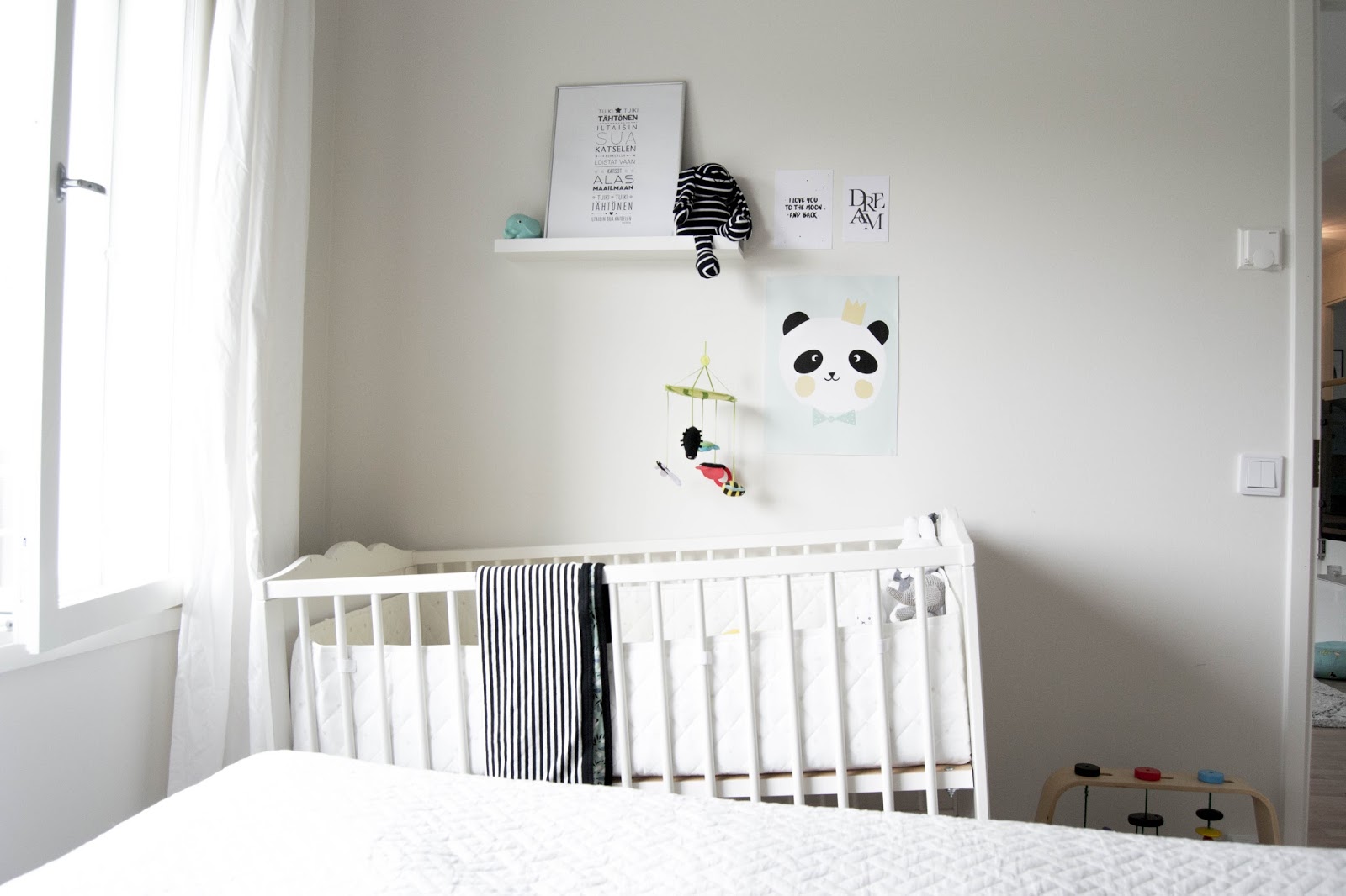 Mä tossa yksi ilta hoksasin, etten ole blogissa julkaissut vauvan nukkumisnurkan kuvia lainkaan! Ylipäätään unijutuista on jäänyt kirjoittamatta ihan täysin. Jotkut ehkä muistaa, että tuplien ollessa vauvoja, he muuttivat omaan huoneeseensa nukkumaan kolmikuisina. Silloin mä en osannut heidän ääntelyssään nukkua yhtään vaan heräilin pienimpäänkin ääneen. Nyt mä en voisi kuvitella, että vauva nukkuisi yksin tai edes kolmisin isojen kanssa.
