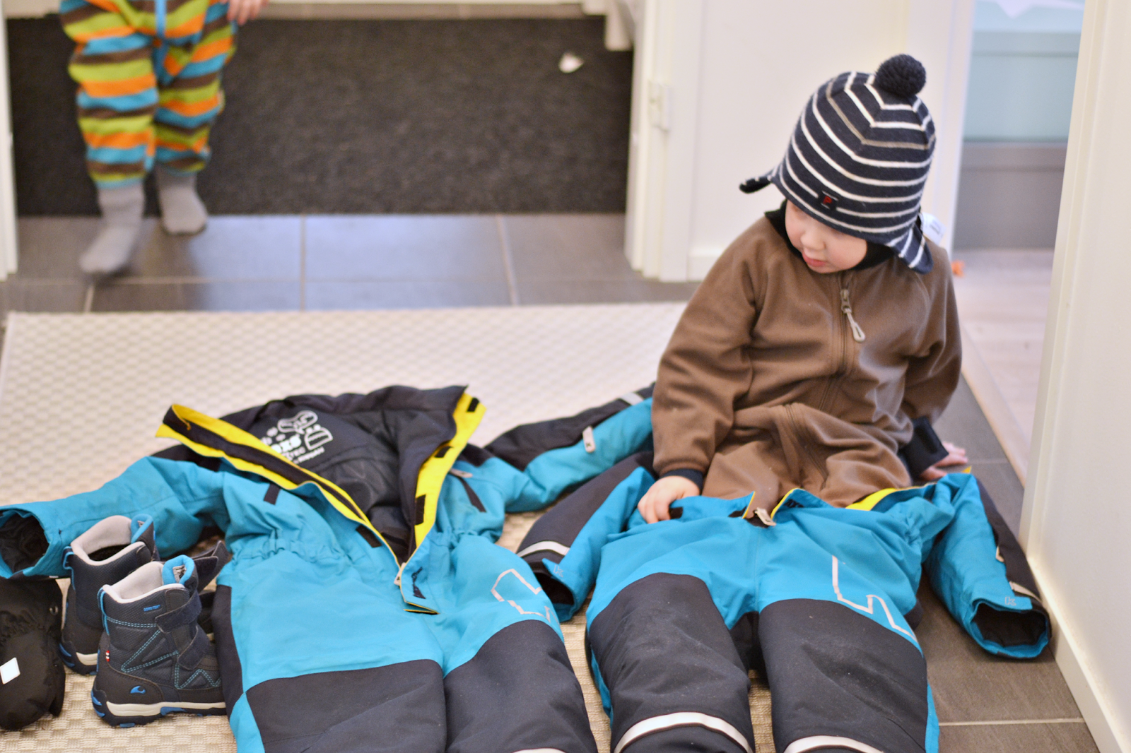 Meillä on lapset aika kuumakalleja. Välillä tekisi mieli pukea heille ulos enemmänkin kerroksia, mutta monesti itse hytistessäni ulkona, on molemmilla pojilla ihan lämmin. Tämä johtuu paitsi siitä, että lapset nyt vaan on saaneet isänsä geenit ja mä olen tällainen vilukissa, mutta myös siitä, että heidät on puettu ulos oikein. Samaa en voi sanoa itsestäni, ja omassa pukemisessa saisin kyllä ottaa kovastikin mallia lapsiltani!