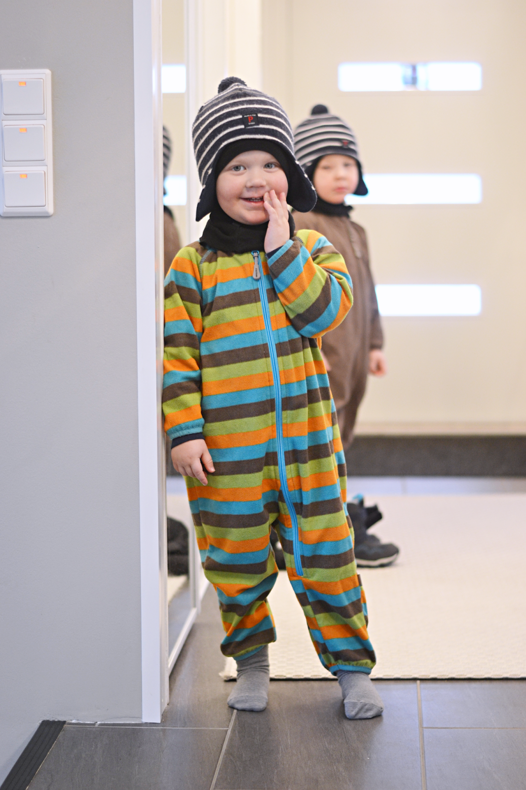 Meillä on lapset aika kuumakalleja. Välillä tekisi mieli pukea heille ulos enemmänkin kerroksia, mutta monesti itse hytistessäni ulkona, on molemmilla pojilla ihan lämmin. Tämä johtuu paitsi siitä, että lapset nyt vaan on saaneet isänsä geenit ja mä olen tällainen vilukissa, mutta myös siitä, että heidät on puettu ulos oikein. Samaa en voi sanoa itsestäni, ja omassa pukemisessa saisin kyllä ottaa kovastikin mallia lapsiltani!